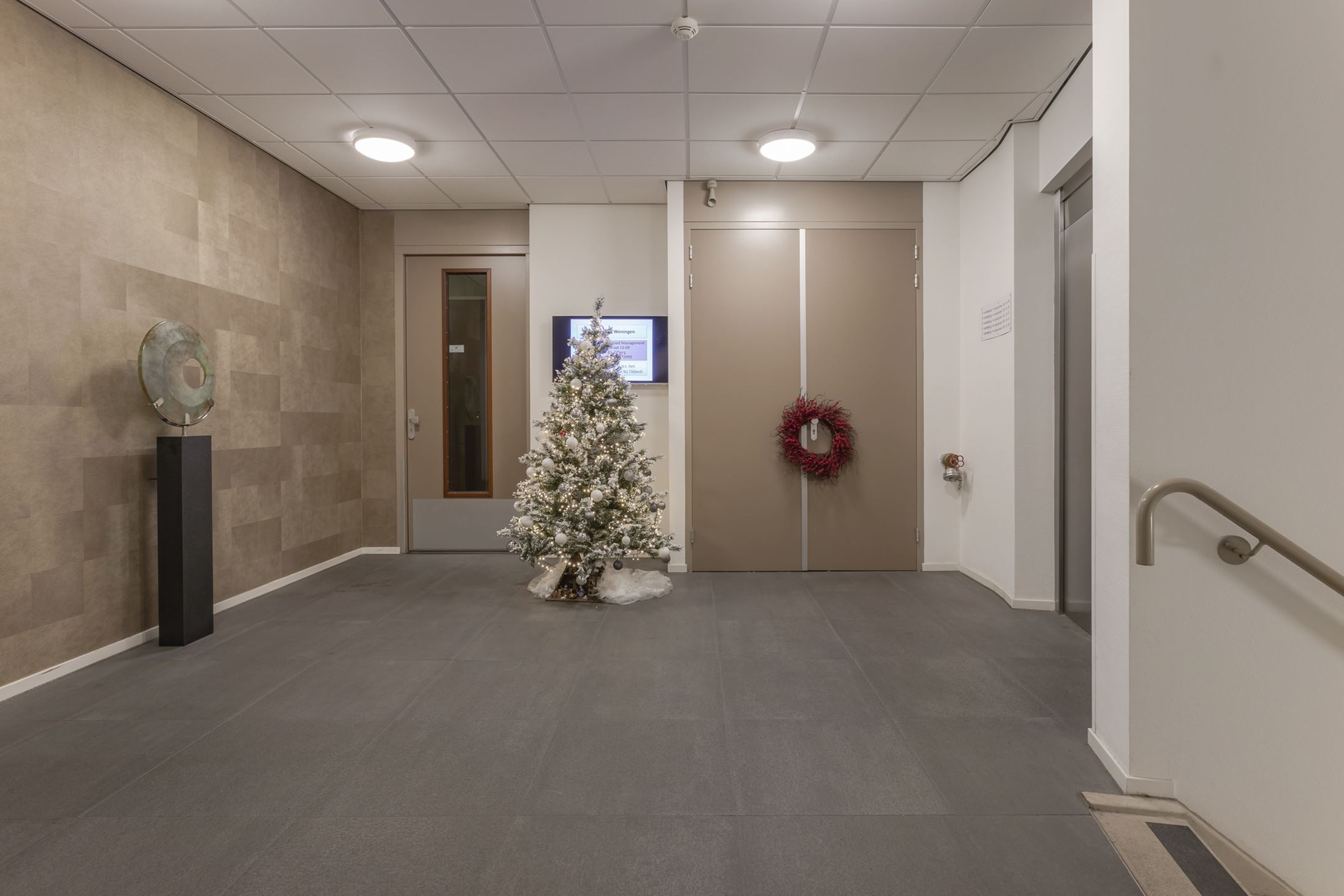 Op de begane grond bevindt zich de centrale entree hal met videofoon, bellentableau, brievenbussen en toegang tot de lift en het trappenhuis. 2e verdieping: Bovengekomen in de gezamenlijke hal die toegang geeft tot enkele appartementswoningen verkrijg je via een korte overdekte galerij voorzien van doorzichtige balustrade toegang tot de appartementswoning. De royale sfeervolle entree is afgewerkt met een pvc vloer, licht gestucte wanden en plafond. De hal met garderobe en meterkast geeft toegang tot twee net afgewerkte slaapvertrekken, toilet, badkamer, bergruimte en de woonkamer met open keuken en balkon. De luxe keuken is van Siematic, voorzien van een inductie kookplaat, combi oven, koelkast, vaatwasser, afzuigkap en granieten blad. Het appartement heeft twee slaapkamers, waarvan de hoofdslaapkamer toegang geeft tot de badkamer. Deze geheel betegelde badkamer is voorzien van een ligbad, inloopdouche, zwevend verhoogd toilet, 2 wastafels met spiegelwand en een designradiator. De toiletruimte is voorzien van zwevend toilet, urinoir en fonteintje. De bergruimte annex technische ruimte is voorzien van pvc vloer, opstelling combiketel (Intergas hre; 2015), unit mechanische ventilatie, stofzuigersysteem (Electrolux Beam, central vacuum system) en aansluiting voor de wasmachine.