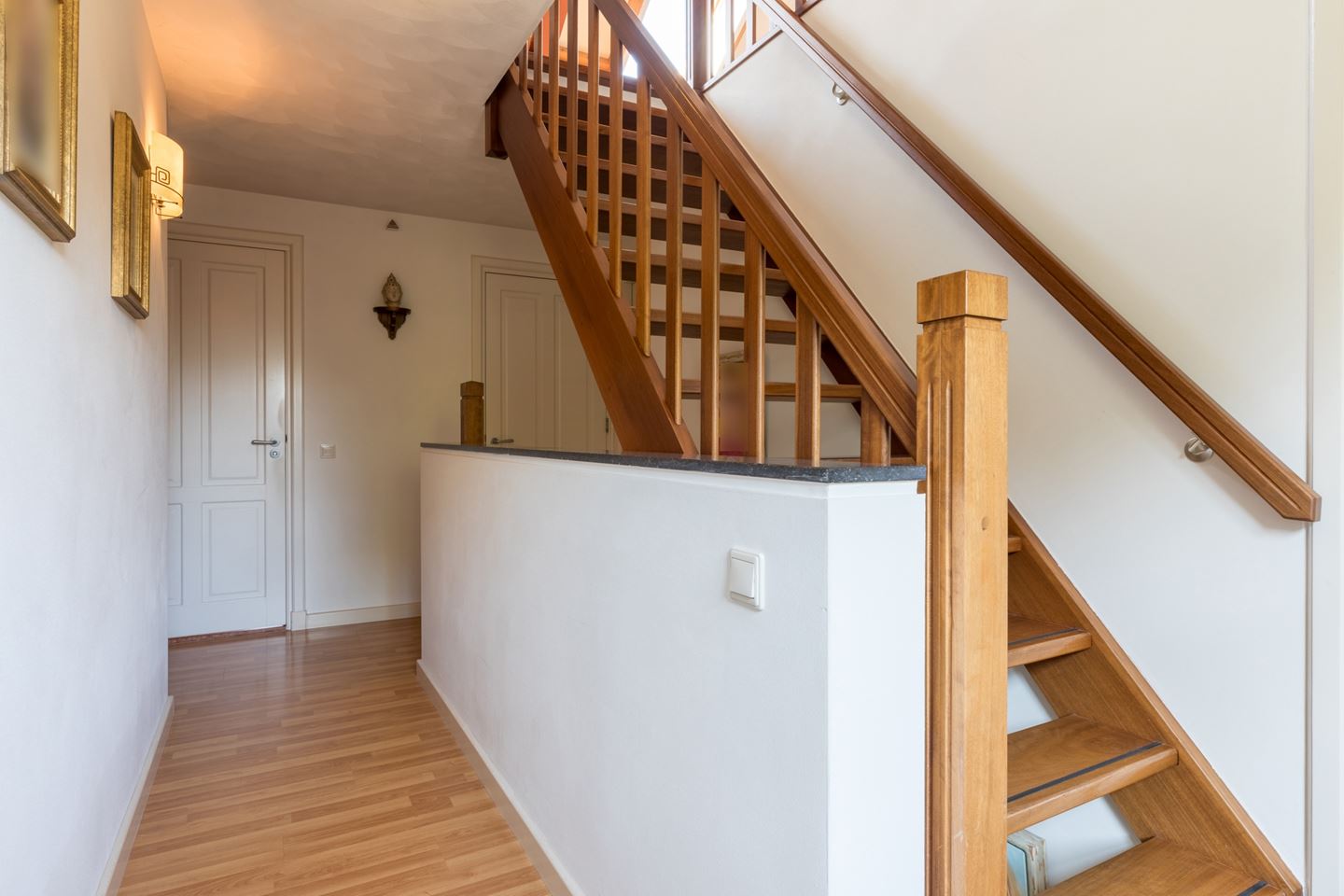 De fraaie ontvangsthal geeft toegang tot de sfeervolle woonkamer, eetkamer, keuken met kelderkast, toilet en trapopgang naar de eerste verdieping. Het toilet is betegeld en voorzien van hangtoilet en fontein. Woonkamer De sfeervolle woonkamer in L-vorm is zeer ruim te noemen met uitzicht op de mooie tuin welke te bereiken is via opslaande tuindeuren.