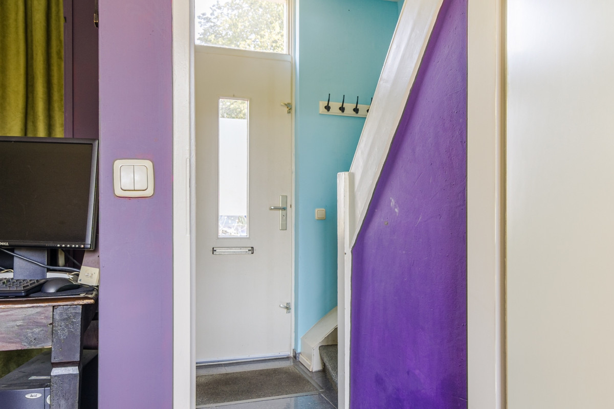 Entree: Door het bovenlicht bij de voordeur valt lekkere veel daglicht de hal binnen. Je vindt er de trapopgang met tegelvloer naar de eerste verdieping, de toegang tot de woonkamer en de meterkast. Het internet gaat via glasvezel.