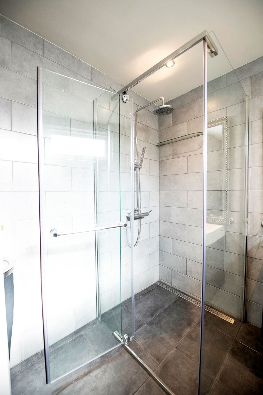 Op de eerste verdieping bevinden zich maar liefst 4 ruime slaapkamers en een ruime inbouwkast op de overloop. Op 1 slaapkamer bevindt zich een ook nog vide waar ruimte is voor een bed. Via de buitendeur van de achterste slaapkamer bereikt u het vernieuwde plat dak, die zeker geschikt is als terras. De andere slaapkamer aan de achterkant heeft een frans balkon. Alle kamers zijn voorzien van inbouwspots en dimmers.